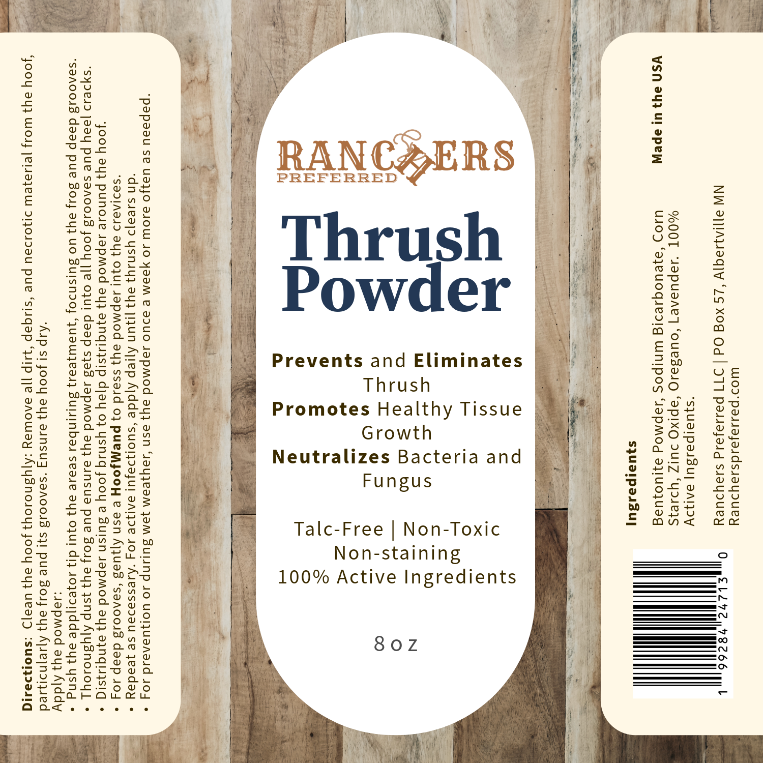 Ranchers Preferred Thrush Powder is an all-natural powder that targets thrush at the source—drawing out moisture and eliminating the breeding ground for continued infection.